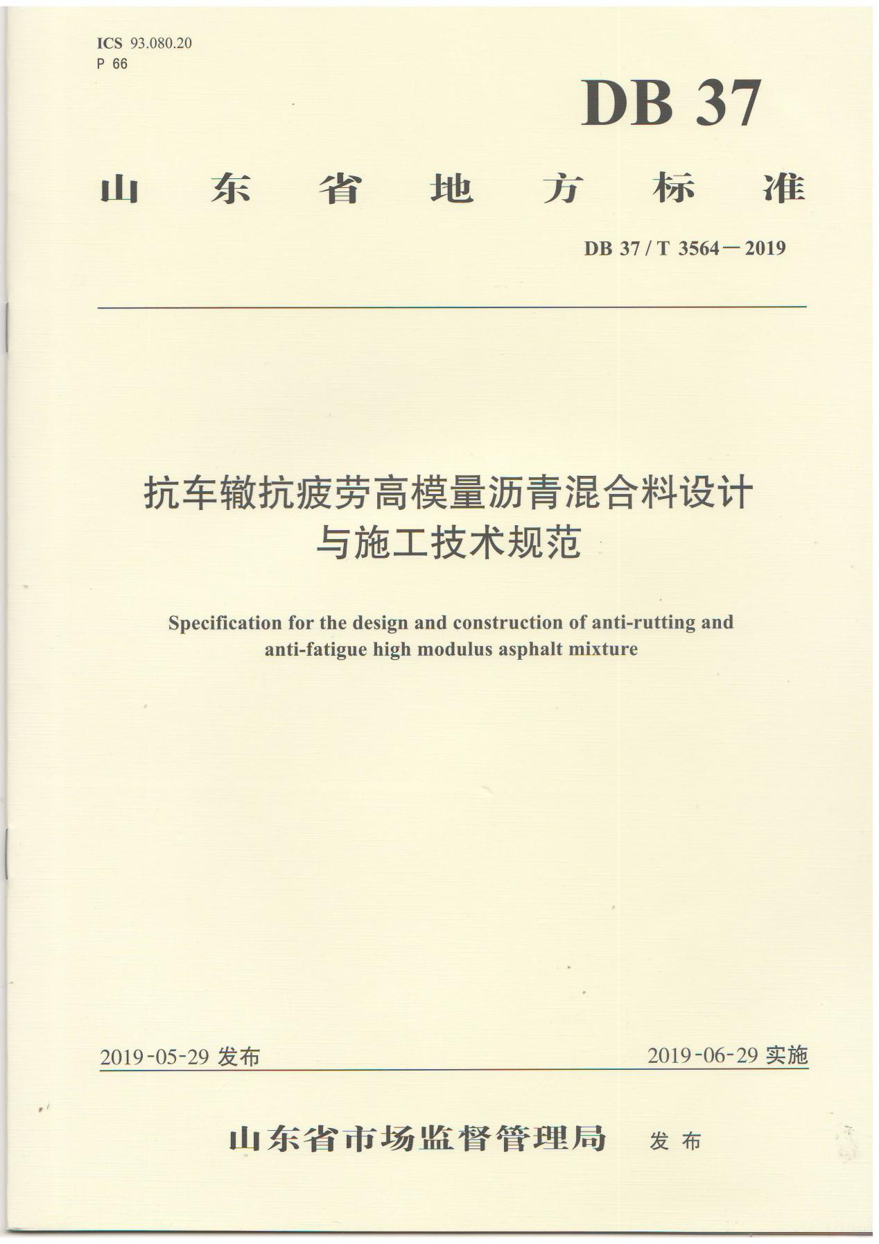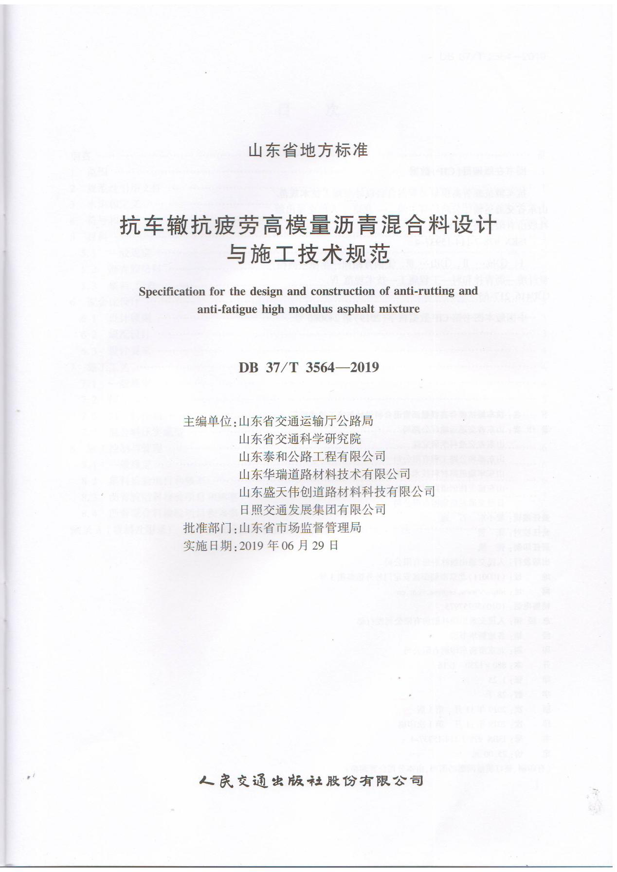 近日,公司參與編制的山東省地方標(biāo)準(zhǔn)《抗車轍抗疲勞高模量瀝青混合料設(shè)計(jì)與施工技術(shù)規(guī)范》(DB 37/T 3564-2019)正式出版印刷。