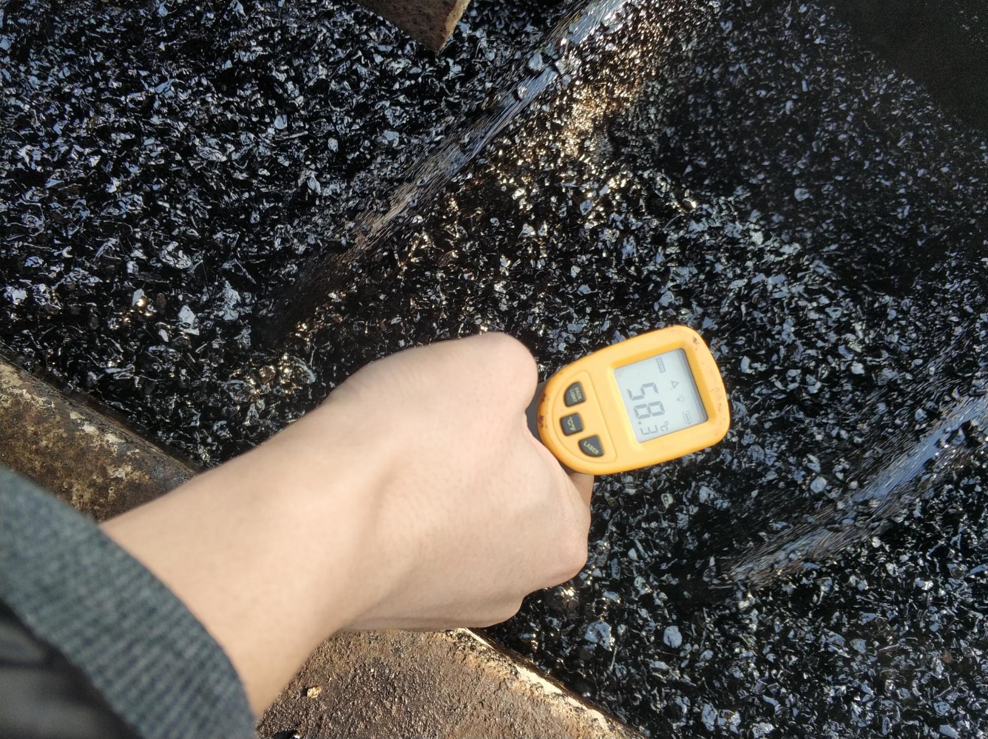 當(dāng)天施工時(shí)氣溫僅有3~5℃并伴有大風(fēng),普通熱拌瀝青已不允許施工。 但我公司新一代MAC冷拌瀝青混合料僅對(duì)石子稍微加熱,出料溫度50~60℃,完全滿足拌和、攤鋪、碾壓各工序?qū)Φ蜏睾鸵仔缘囊蟆?路面碾壓成型降至接近氣溫后即具有較高的強(qiáng)度,可立即開放交通。 采用的開級(jí)配混合料為骨架嵌擠結(jié)構(gòu),承載力高,不易變形,易于施工控制,節(jié)省石料和瀝青。 現(xiàn)場觀摩的交通局領(lǐng)導(dǎo)、外國專家和施工單位對(duì)MAC冷拌瀝青混合料的低溫施工性能和路面強(qiáng)度一致認(rèn)可,并給予較高評(píng)價(jià)。