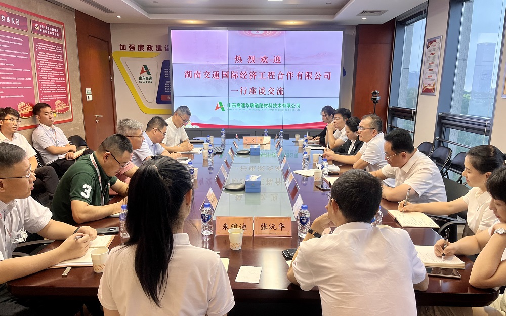 9月14至15日,湖南交通國際經(jīng)濟(jì)工程合作有限公司(以下簡稱“交通國合公司”)黨委委員、副總經(jīng)理孫宇燕,副總經(jīng)理孫波等一行到建材集團(tuán)華瑞公司考察交流。山東高速建材集團(tuán)黨委副書記、董事、總經(jīng)理崔若賓,黨委委員、副總經(jīng)理宋征,華瑞公司領(lǐng)導(dǎo)班子及相關(guān)部室負(fù)責(zé)人參加交流座談。