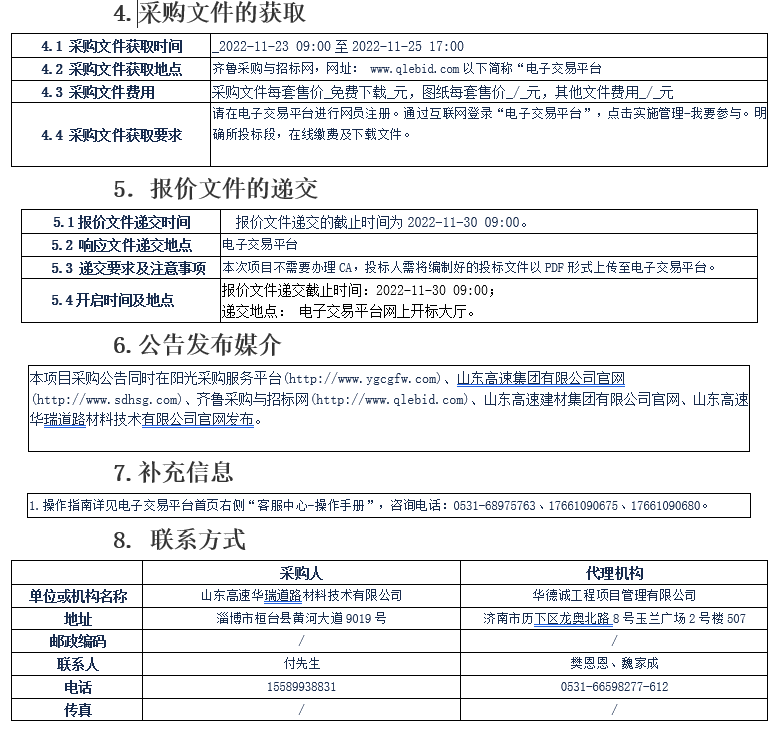山東高速華瑞道路材料技術(shù)有限公司選取加工廠2022年底生產(chǎn)線維修改造施工方項目談判采購公告